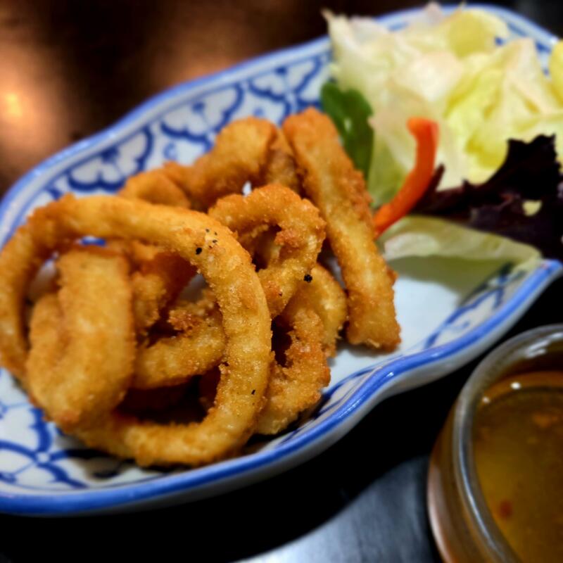 Seasoned flour squid deep fried, served with spicy, sweet, and sour sauce